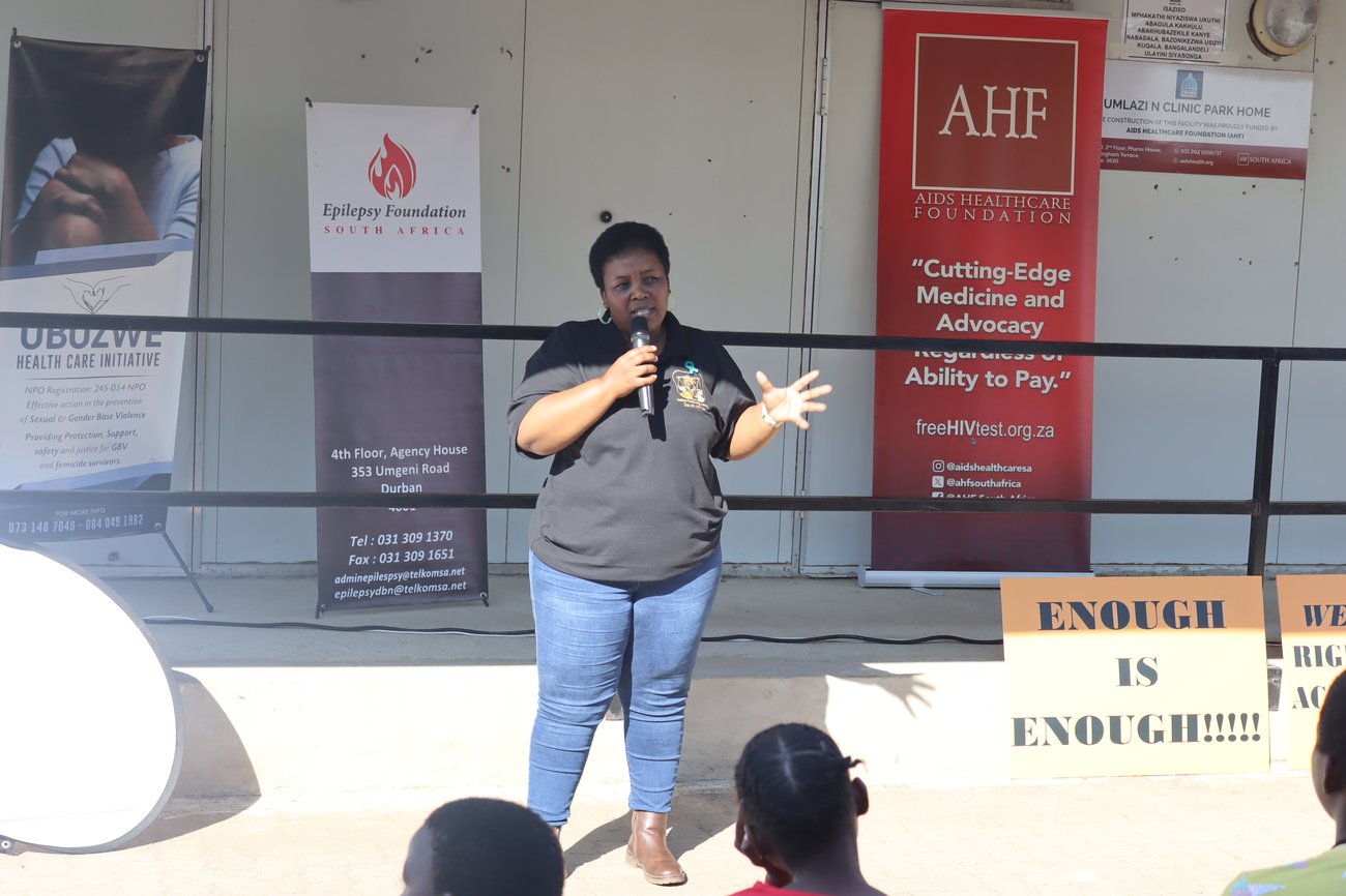 Jabu Langa from our partner Thuthuzela Care Centre speaks to participants at Umlazi N Clinic following the march. |