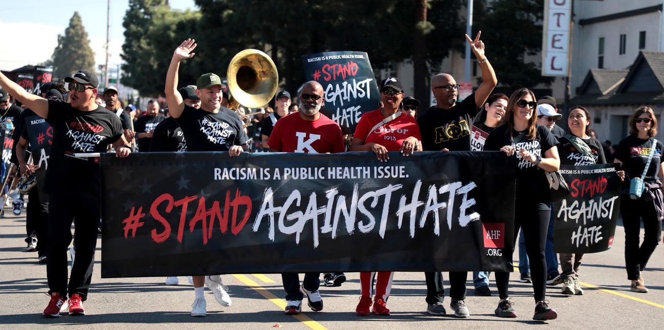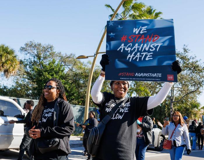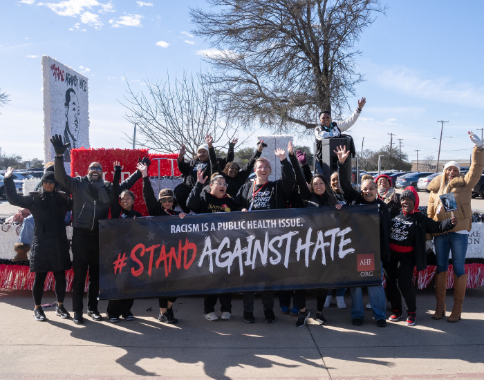 AHF community ambassadors rallied in Los Angeles in support of the Stand Against Hate campaign. |