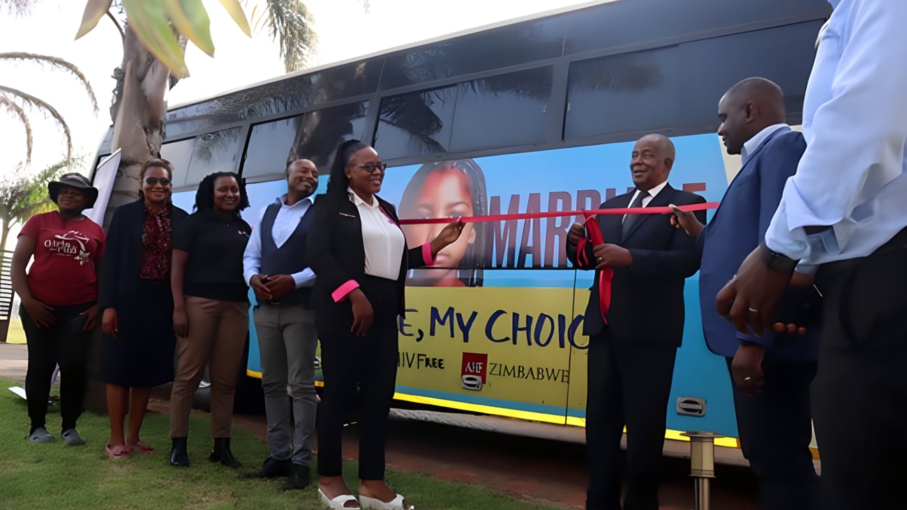 In the Eastern Highlands of Zimbabwe, a bold stand against child marriage is hitting the road—literally—with AHF Zimbabwe’s launch of a striking billboard on a public transport bus that reads: End Child Marriages. My Future, My Choice with the hashtag #KeepGirlsHIVFree.