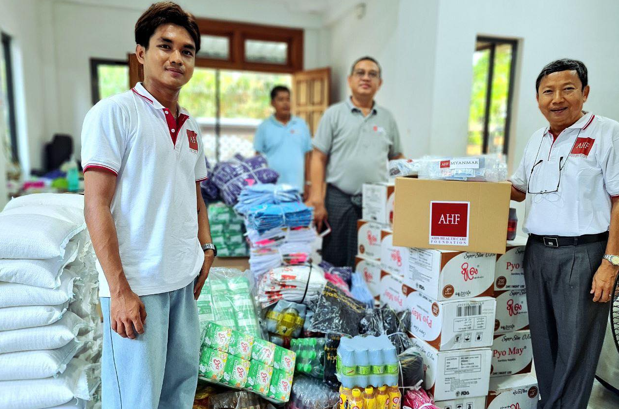 AHF Myanmar team prepares essential items for those most affected by the natural disaster.