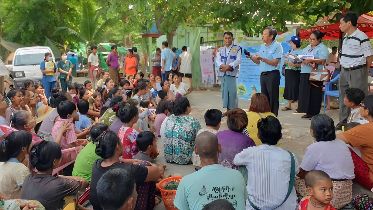 AHF leads health education sessions at a relief site ahead of monsoon season in May, when the risk of communicable disease outbreaks is expected to rise.