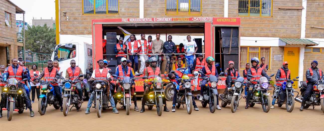 AHF Kenya hit the streets with branded trucks, music, and motorcycle taxis to share Wellness Center services with local communities.