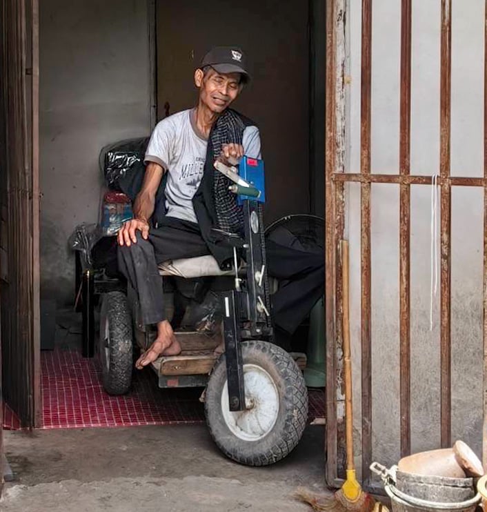 Boonsap with his hand-peddled tricycle from M-CAN. "Thanks to M-CAN, with support from AHF, I’ve regained my health, my independence, and a sense of security I never thought possible."