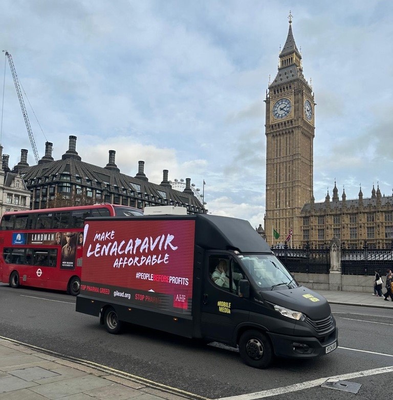 On Nov. 11 and 12, as pharmaceutical industry leaders gathered in London for the Global Pharma & Biotech Summit, AHF deployed a mobile billboard to spotlight Gilead Sciences’ greed and refusal to make its breakthrough HIV prevention drug, lenacapavir, truly affordable and accessible.